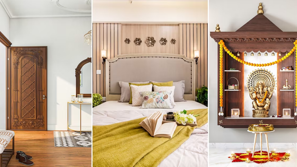 - Door Material and Design: Opt for solid wood doors, preferably teak or mango wood, for strength and positivity. Wood is considered to exude positive energy and is believed to bring stability and grounding to your home. Avoid using metal doors or broken or cracked doors.